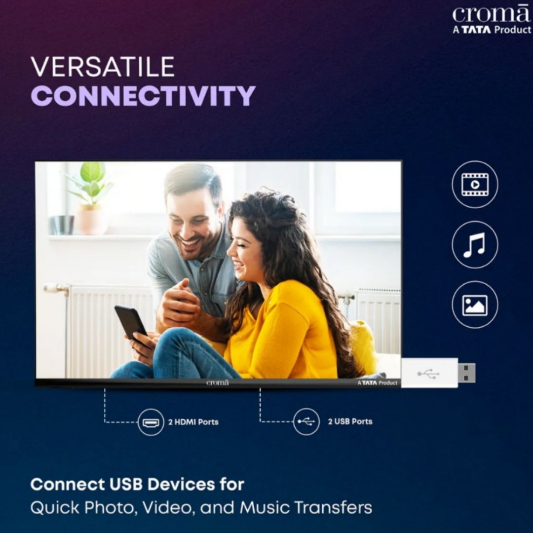 Croma का यह 80 cm (32 inch) HD Ready LED TV आपके घर के लिए एक perfect budget-friendly entertainment solution है।