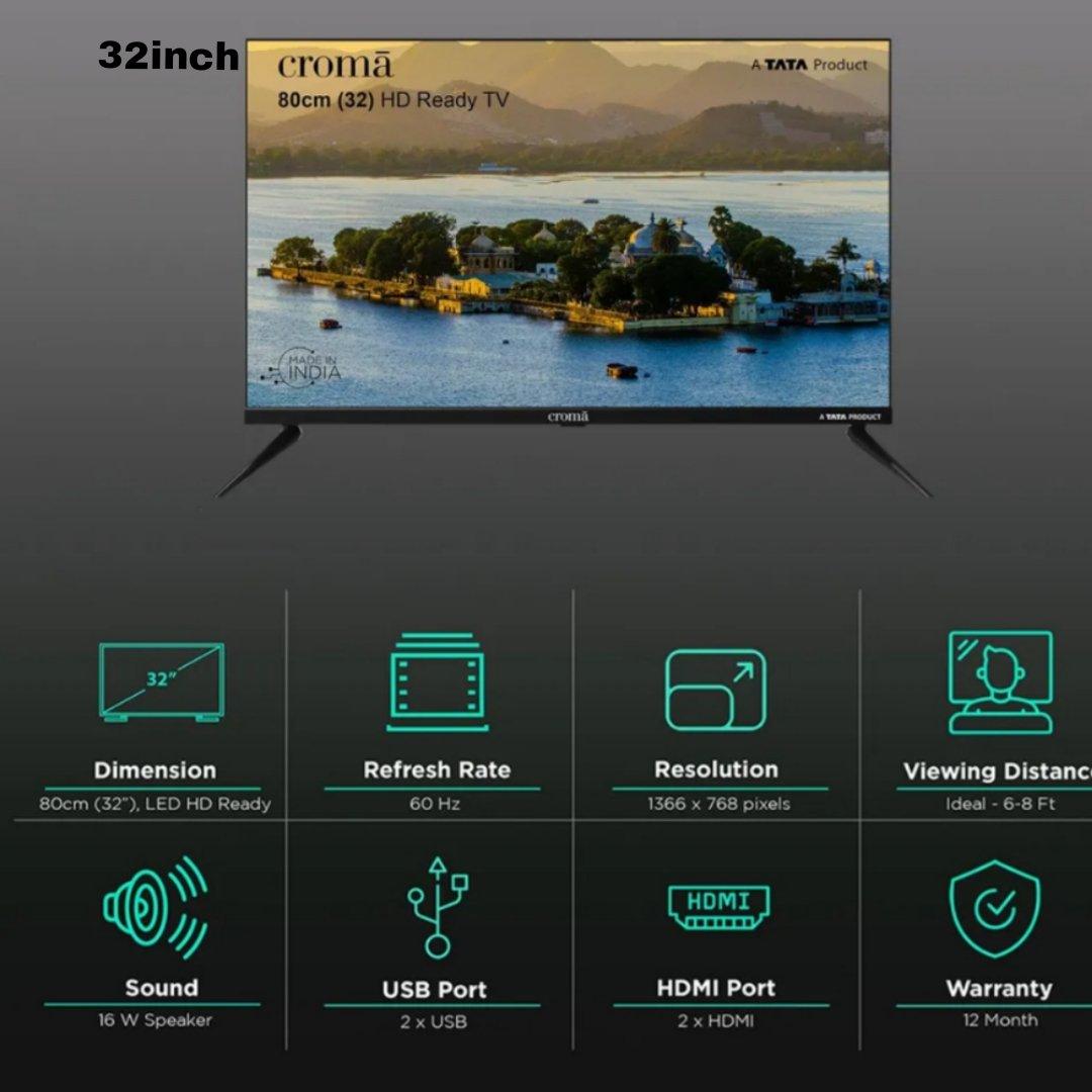 और stylish option चाहिए तो Croma 80 cm (32” HD Ready LED TV) आपके लिए best choice है!